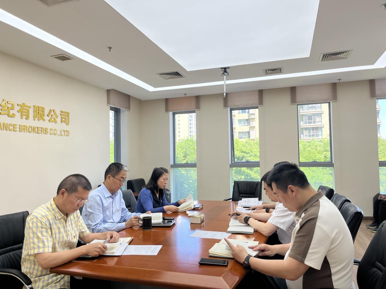 5月15日,中國有色集團出資企業金晟保險經紀有限公司(簡稱:中色金晟)黨支部舉辦理論學習中心組黨紀學習教育第二期專題讀書班,原原本本、逐條學習《中國共產黨紀律處分條例》。黨支部書記、副總經理左躍新主持讀書班并作研討發言,執行董事、總經理吳剛作研討發言,其他班子成員領學《條例》部分章節內容。