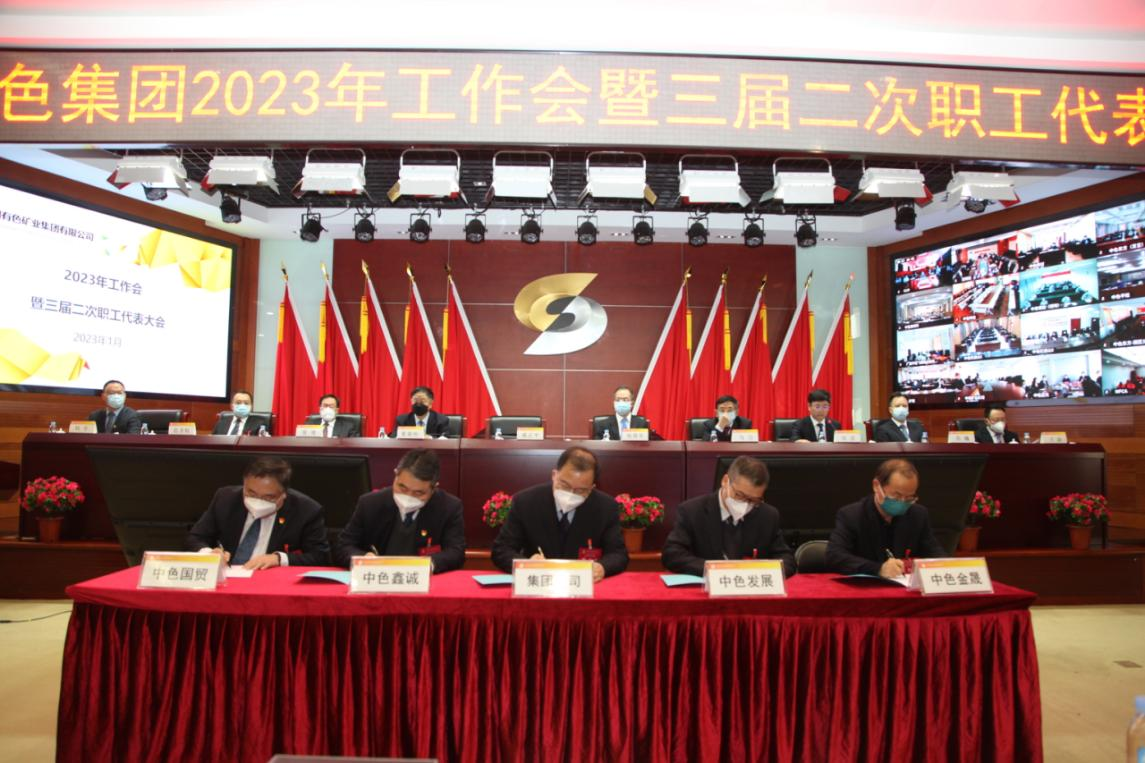 ?會議還簽訂了出資企業經營業績、安全環保、黨風廉政建設責任書和重點項目“軍令狀”,進行了交流發言,通過了《中國有色礦業集團有限公司三屆二次職工代表大會決議》。??
