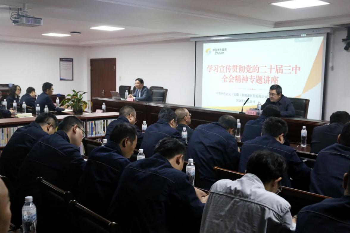 為深入學習宣傳貫徹黨的二十屆三中全會精神,準確把握全會精神實質和豐富內涵,推動各項貫徹落實工作走深走實,11月20日,中國有色集團出資企業中色正元(安徽)新能源科技有限公司(簡稱:中色正元)黨委邀請中共中央黨校(國家行政學院)法學博士、中共安徽省委黨校(安徽行政學院)副教授于德作專題輔導講座。