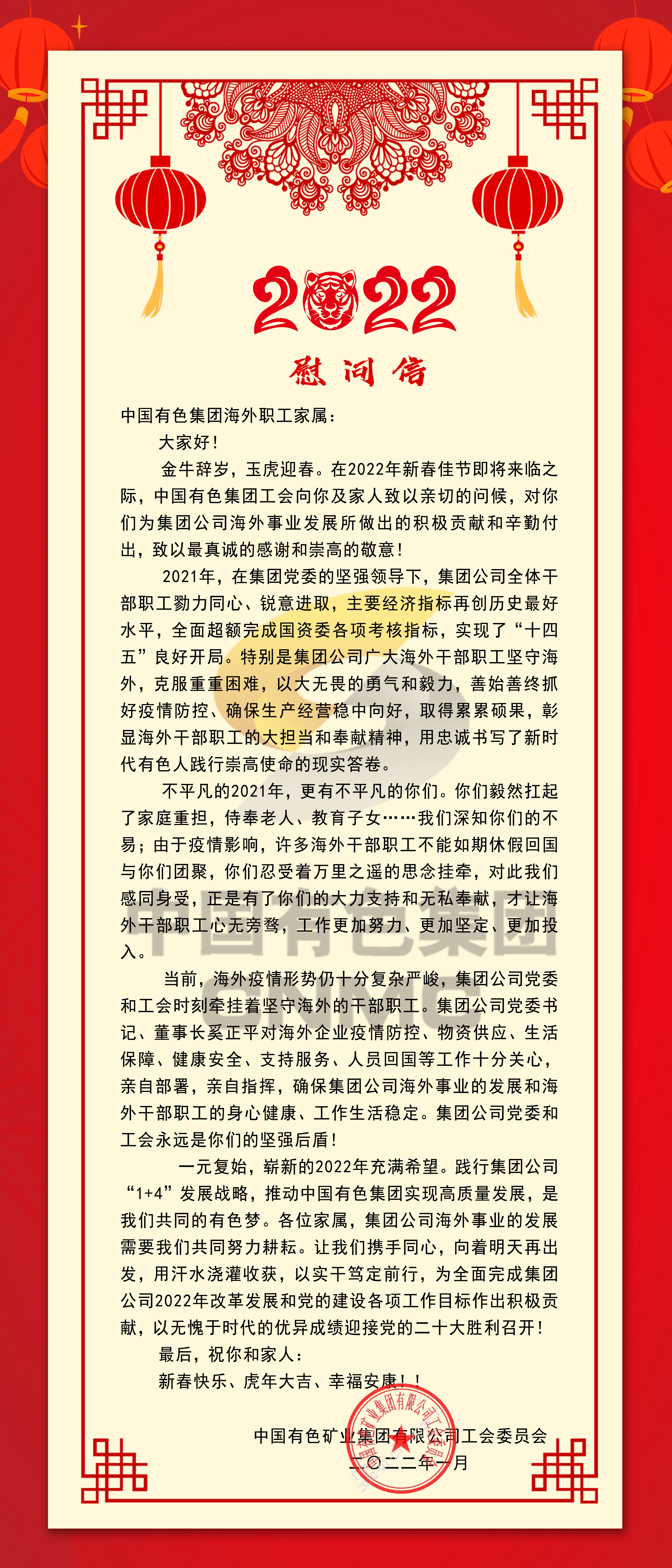 致中國有色集團海外職工家屬的慰問信