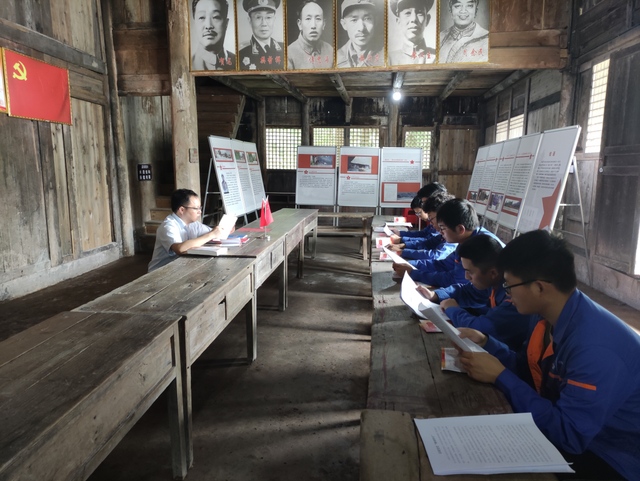 中色十五冶武漢公司項(xiàng)目黨支部書記在紅色教育基地為支部黨員講黨課,號召黨員干部傳承發(fā)揚(yáng)紅色基因。