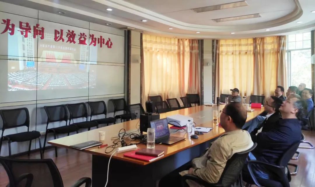 ????公司總部,鮮花綻放,彩旗飄揚。“熱烈慶祝中國共產黨第二十次全國代表大會勝利召開”的宣傳標語格外醒目,公司以黨委理論學習中心組(擴大)會議的形式,集中收聽收看開幕會直播。公司領導王焱、王勃、肖述欣、湯真、陳峙淼、楊坤、萬軍、張建強,公司總經理助理龍仲勝、陳志友、郭清斌及公司部室主要負責人參加。