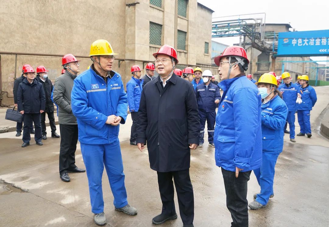 ????2月14日,中國(guó)有色集團(tuán)黨委書(shū)記、董事長(zhǎng)奚正平到中色大冶冶煉廠檢查指導(dǎo)環(huán)保升級(jí)改造及生產(chǎn)系統(tǒng)完善工作,勉勵(lì)該廠堅(jiān)定信心、樹(shù)立雄心,以科技進(jìn)步推動(dòng)環(huán)保升級(jí)改造,實(shí)現(xiàn)綠色高質(zhì)量發(fā)展。集團(tuán)黨委副書(shū)記、總經(jīng)理張晉軍,集團(tuán)紀(jì)委書(shū)記范圣權(quán),副總經(jīng)理范巍、劉宇、王焱,中色大冶黨委書(shū)記、總經(jīng)理胡國(guó)斌參加檢查。